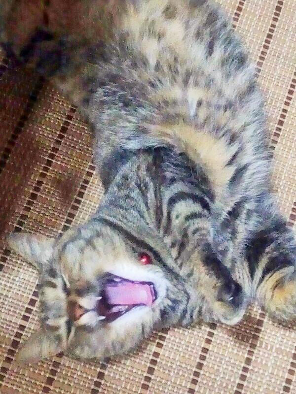 また私の布団を占領して横になってました。お腹…空くと吐くんですよね…。