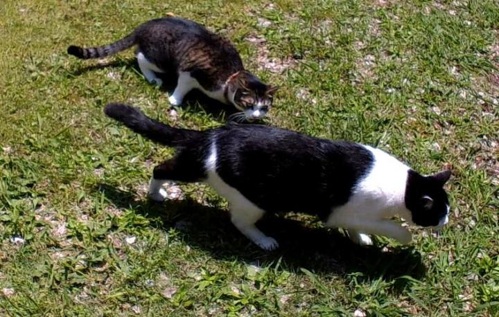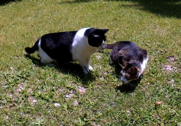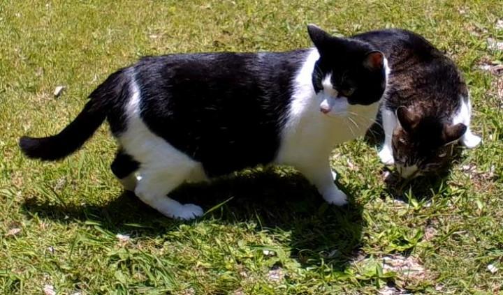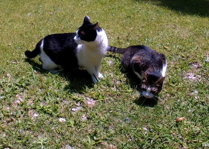 先日、いいお天気の日に、ほんのちょっとだけお外に出たハチ君と七七保。