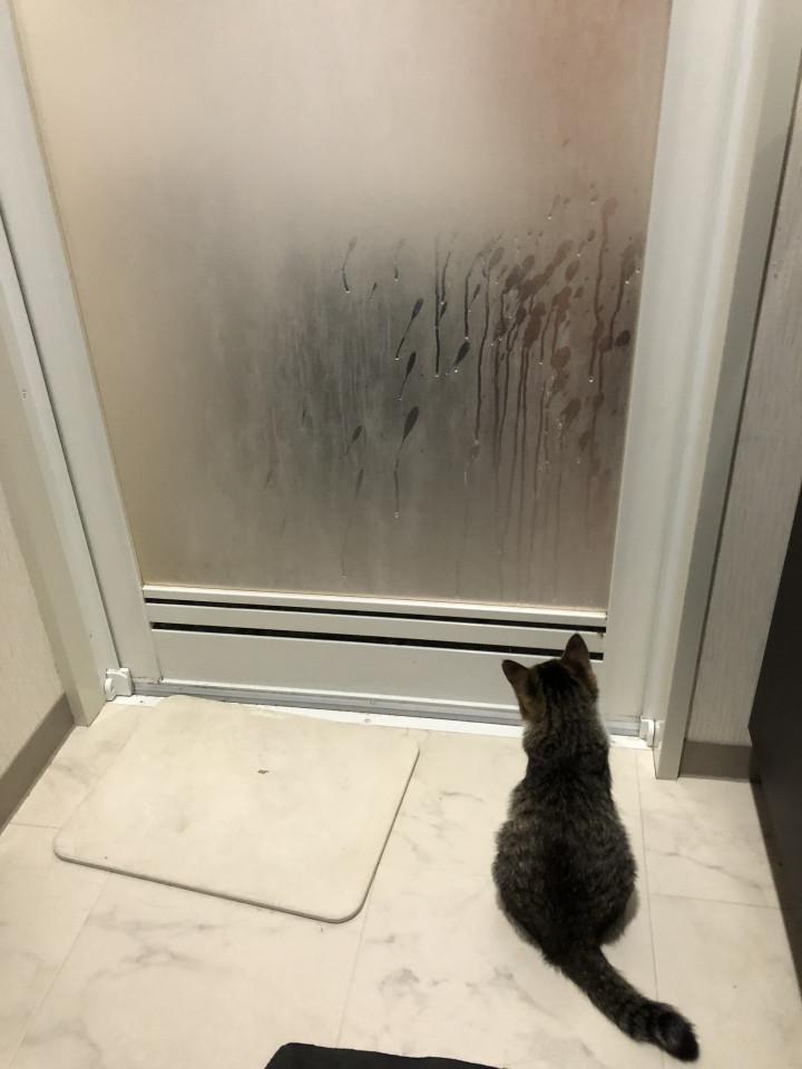 いつも脱衣場で必ず出待ちしてくれるもんちゃん💕