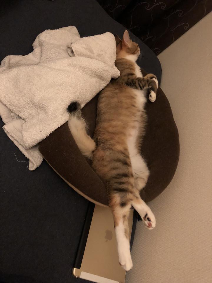 まレアの寝相も面白いんだった!