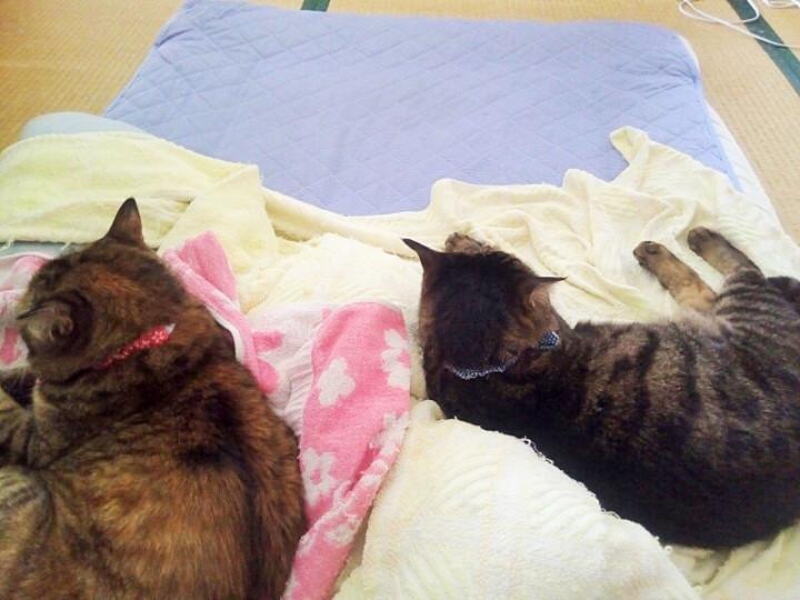 庶民派なんで人の布団の真ん中を隙見て占領する図(便乗犯がいます)