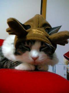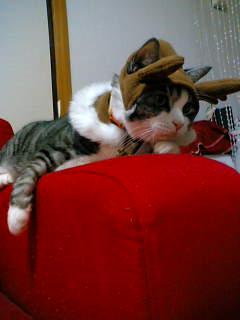 昨日の日記のレスに、♪TOMO♪さんから、トナカイのかぶりものを着てくれなかった、とあったので、うちの子のを貼ります。