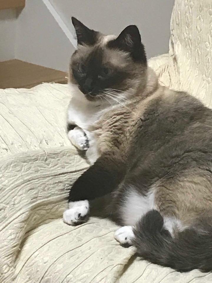 お友達の方から言われたことですが、しーちゃんは、シャムでも、純血に近いと、白足袋白手袋からすると、バーマンの血が入っているのでは?って…