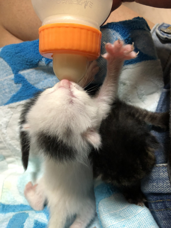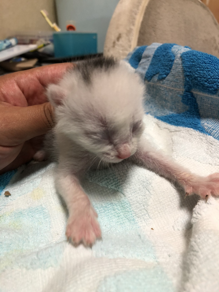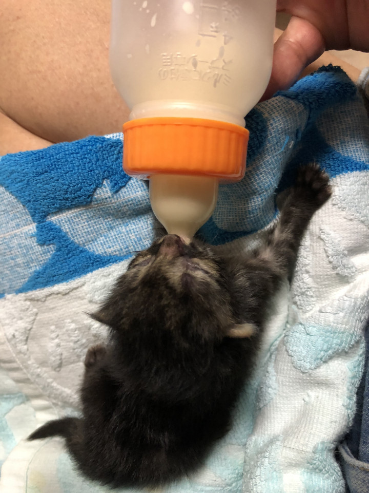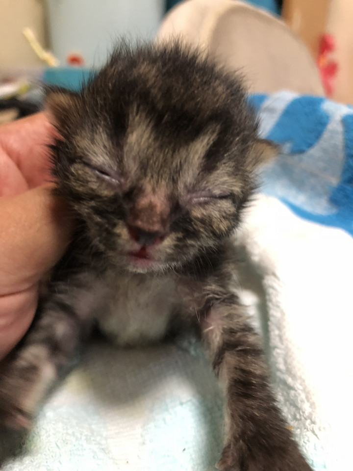 丸くなった子猫を触ったら元気に泣き出し一安心(>人<;)