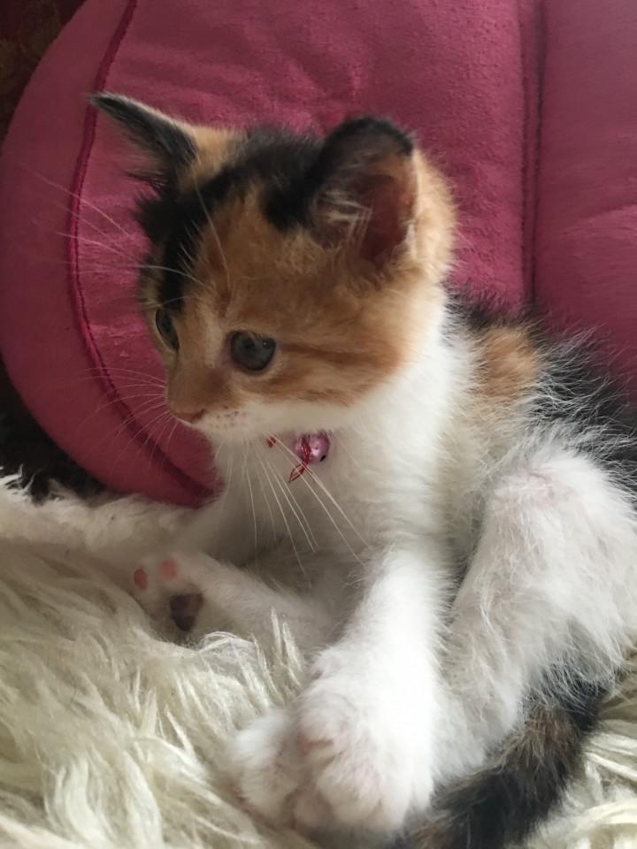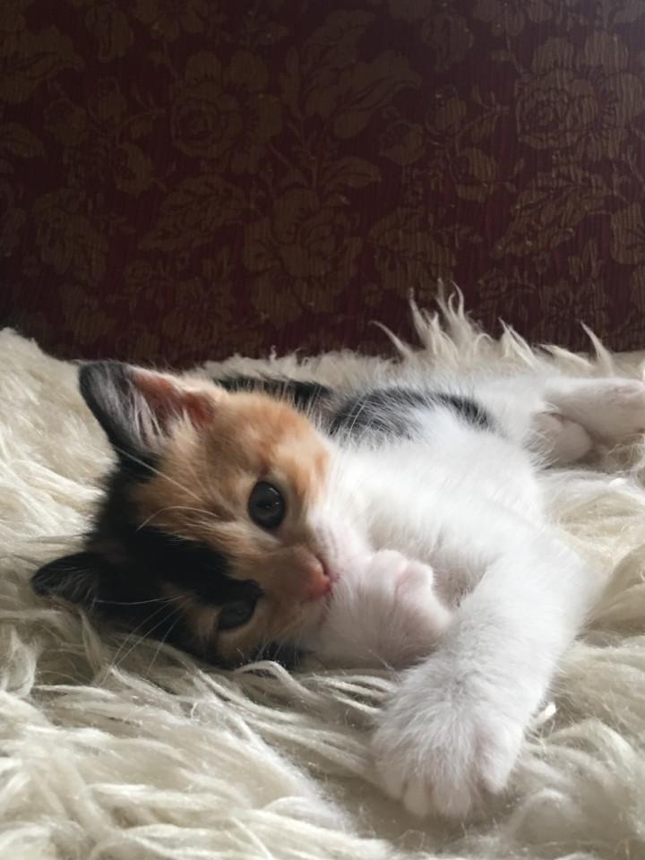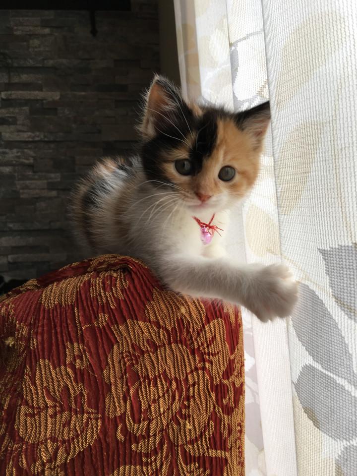 生後2ヶ月半くらいで保護主さんからわが家に来ました。ケージを卒業して自由に走りまわり、ついに洗濯機までよじ登れるヤンチャ娘になりました。