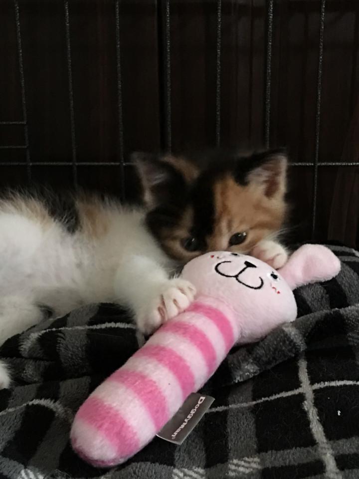 保護主さんは大雨の翌日、カラスの群がる公園からこの子を助け、ミルクを夜中も2時間おきに与えてくださったそうです。きっとこの子を手放す時は寂しさもあったと思います。