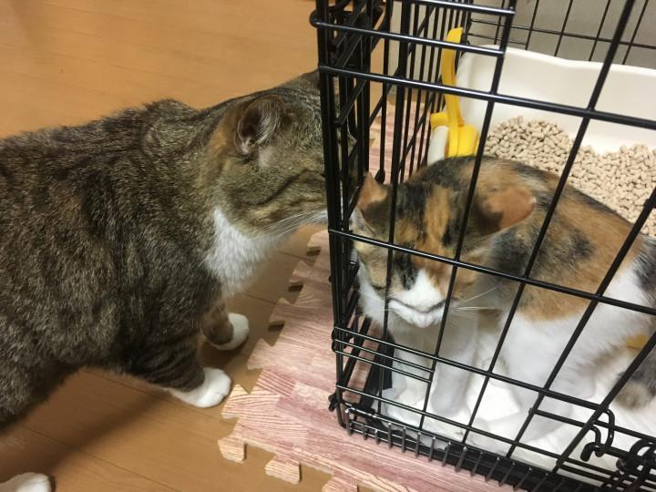 まだまだ小梅ちゃんと距離がありますがケージ覗いてはスンスン匂いを嗅いでます^ ^