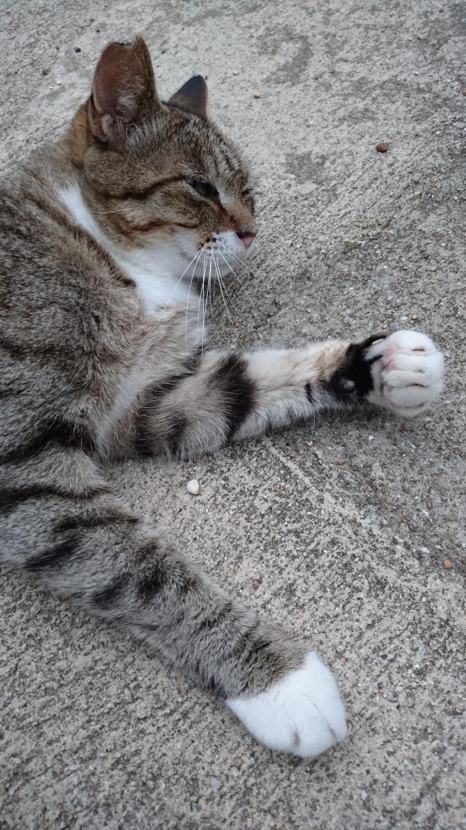 食事が終わり3号がお庭でゴロンと横になっていたので、いつもの様にナデナデしていると…