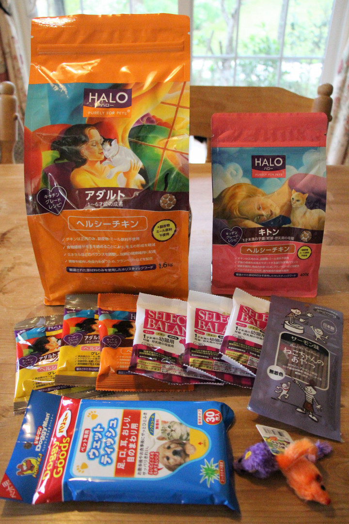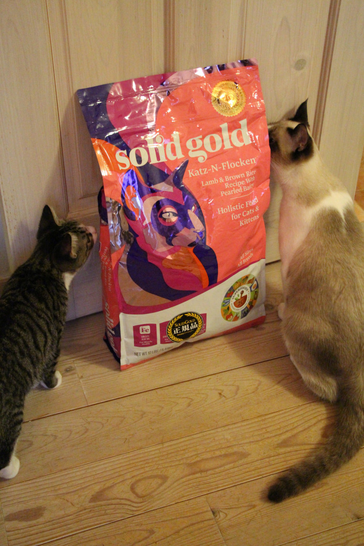 チキンミール、全粒ひきわり玄米、全粒ひきわり大豆、全粒ひきわり小麦、全粒ひきわりコーン、鶏脂肪、脱果汁トマト、ひきわりフラックスシード、ナチュラルフレーバー、メンハーデンフィッシュミール、塩化コリン、塩、乾燥乳タンパク質、乾燥チコリー根、ミネラル(炭酸カルシウム、酸化亜鉛、タンパク質化合亜鉛、硫酸鉄、酸化マンガン、硫酸銅、タンパク質化合マンガン、ヨウ素酸カルシウム、タンパク質化合銅、亜セレン酸ナトリウム、炭酸コバルト)、DL-メチオニン、ビタミン(ビタミンE、ナイアシン、Lアスコルビル-2-ポリリン酸塩、ビタミンA、D-パントテン酸カルシウム、硝酸チアミン、リボフラビン、塩酸ビリドキシン、ビタミンD3、葉酸、イノシトール、ビオチン、メナジオン重亜硫酸ナトリウム複合体、ビタミンB12)、タウリン、塩化カリウム、パセリフレーク、乾燥ケルプ、ユッカシディゲラ抽出物、ミックストコフェロール(保存料)、ベジタブルオイル、クエン酸、レシチン、ローズマリー抽出物