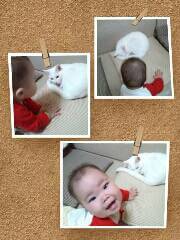 昨日、LINEの昔のタイムラインで見つけた画像。末っ子が赤ちゃんの時に、モモちゃんと撮ったもの。