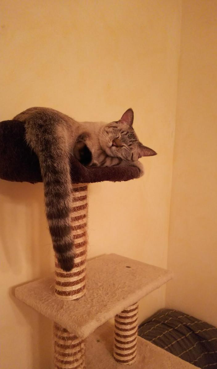 でも、このキャットタワー登ってる途中とかね、あせって何度も落ちかけたり。