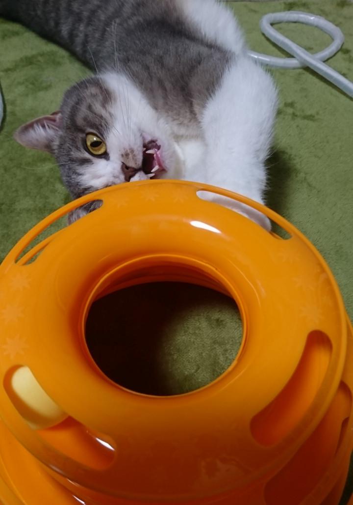 一人遊びは嫌いなようで、据え置き型おもちゃは不評でした。