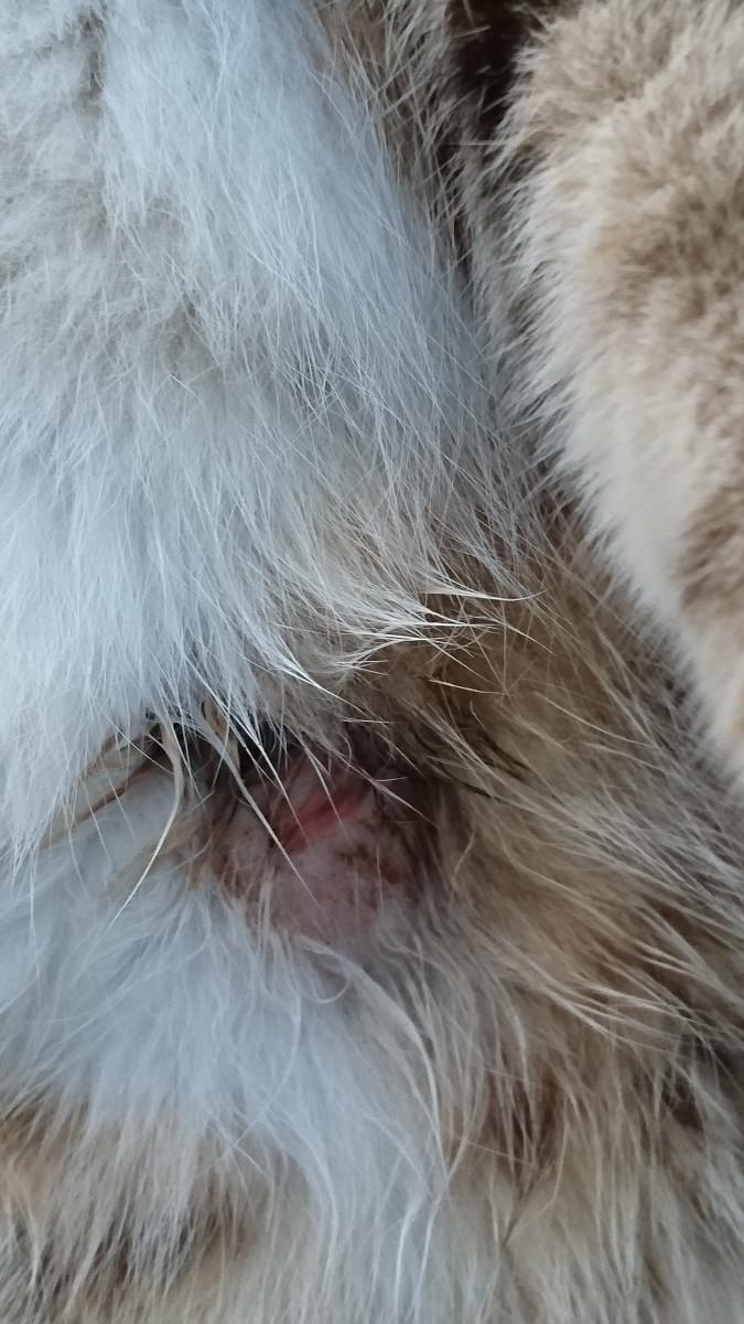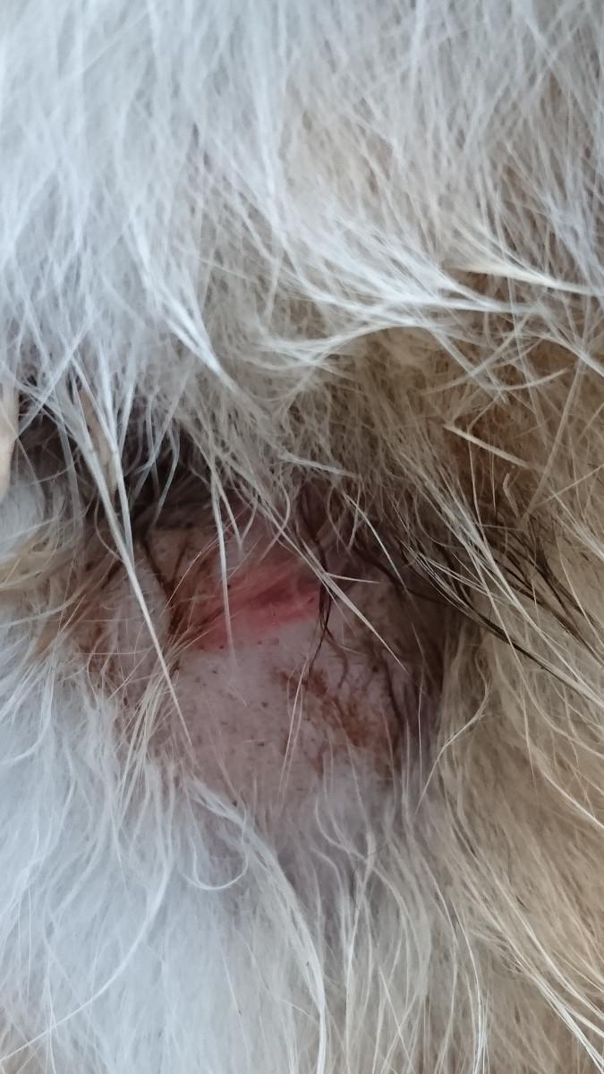 相変わらず毛が深いので見えにくいのですが、キズ口はまだあまり乾燥していません。