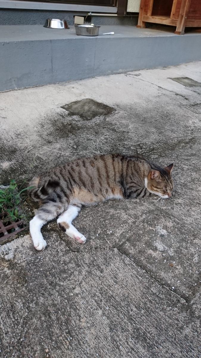 今日は久しぶりに朝から晴れたので、猫3号コロタ君ハウス上から降りて、お隣さんの我が家のお庭がよくみえる軒下で、朝から夕方まで気持ち良さそうに寝ていました。