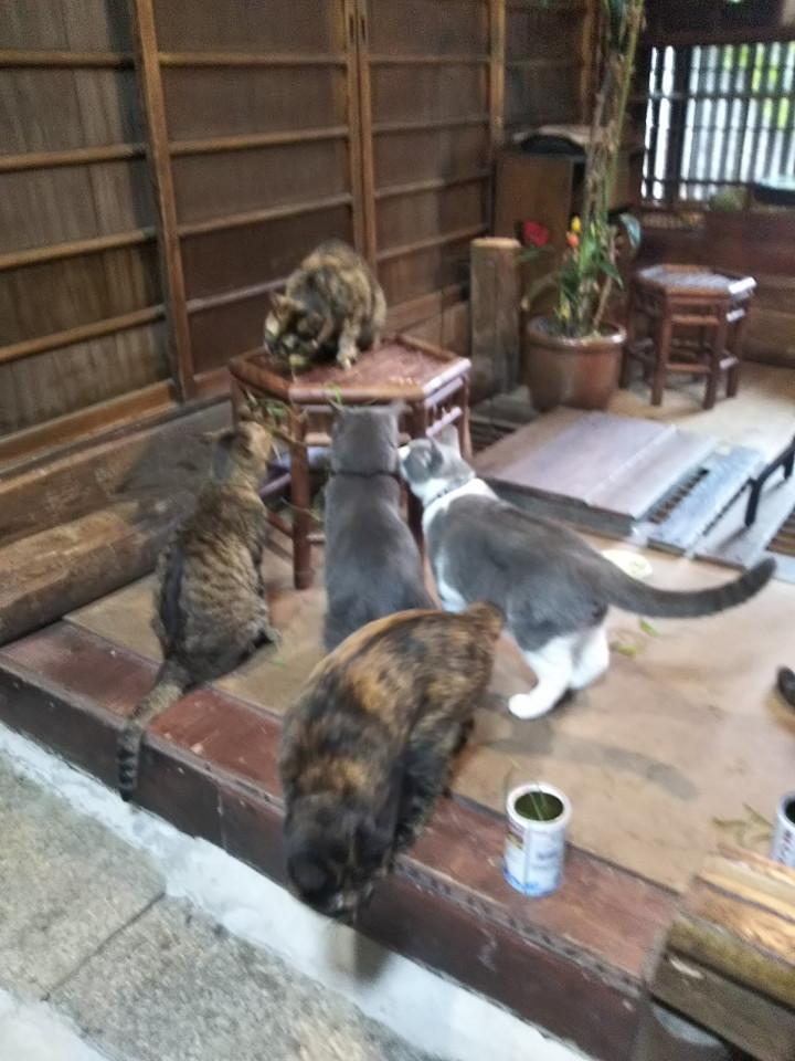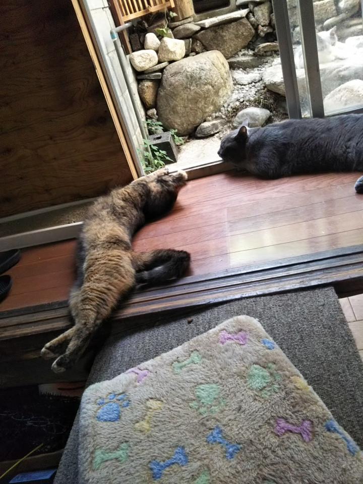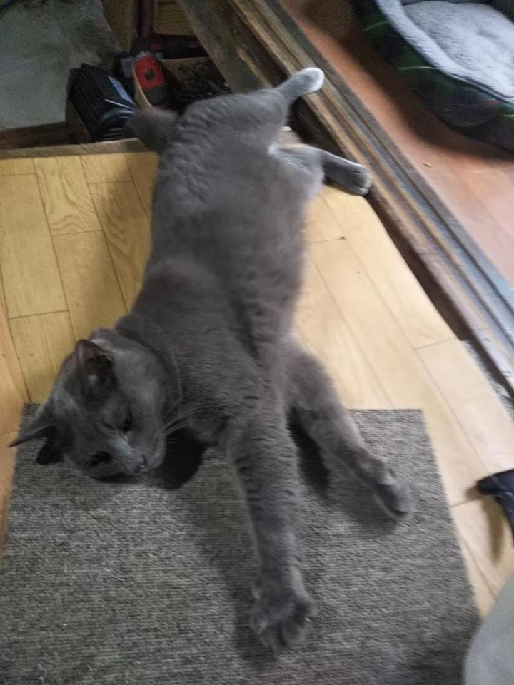 まだ触らせてくれない室内野良猫のまる子が見上げられてる( ̄□ ̄;)!!