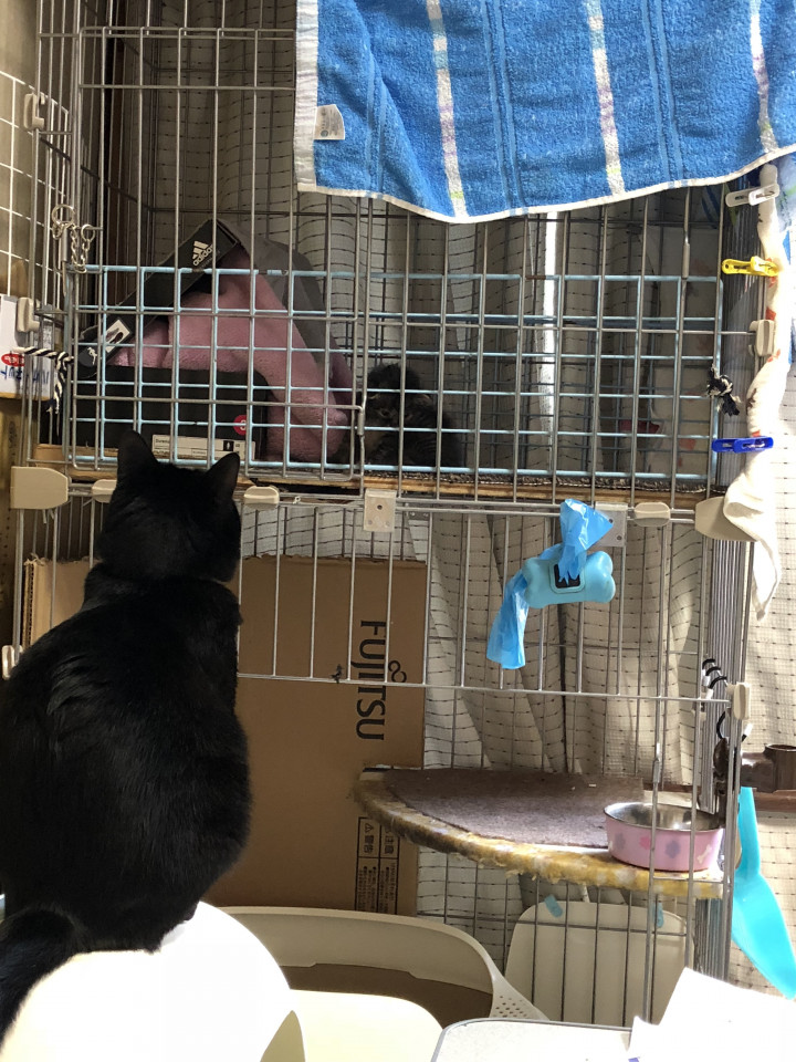 子猫はゲージの網をくぐってこれるので余ってた網でカバーつけました(*´∇`*)