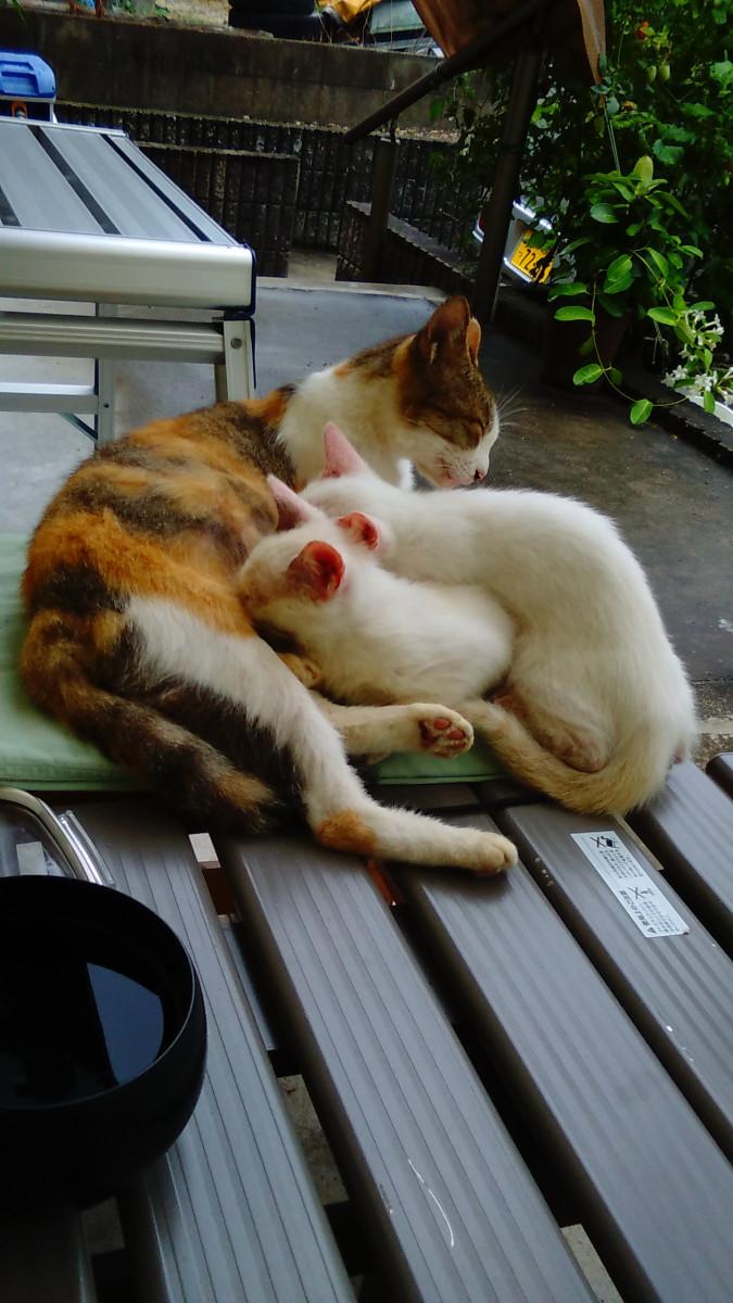 こうして3匹の仔猫を連れてきてくつろいでいたのは