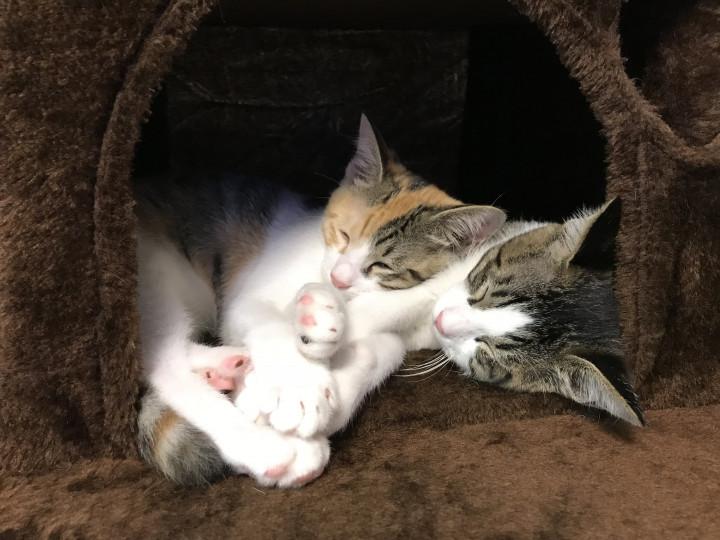旦那の実家に野良猫が産んで連れてきた子猫を引き取りました(*・ω・) 白とグレーがアル ミケがルナです(っ´ω`c)兄弟 マイペースにのんびり写真載せて行こうかと思います? 主に夜~夜中に...