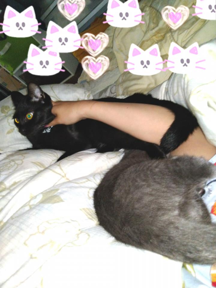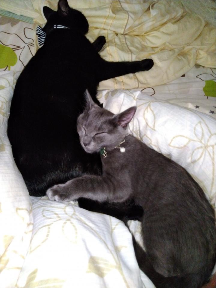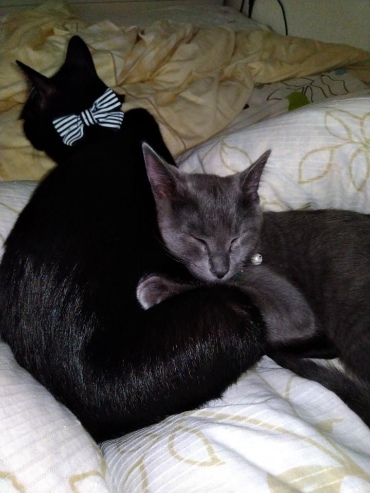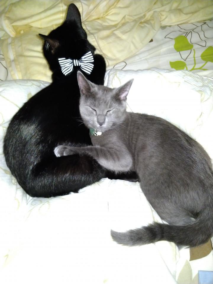 先日もロダンが私の布団で一緒に寝ているとクロードがやってきて、ロダンの横に寝転がり一緒に寝始めました。