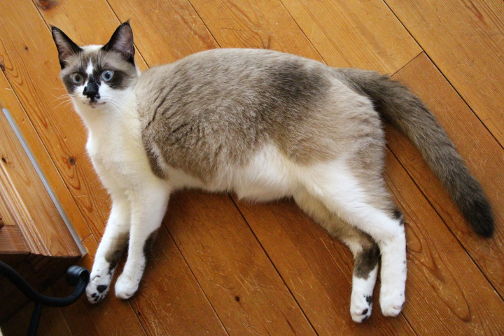 ハチワレ+目の周り濃い目のタヌキ顔でございます。(≧▽≦)