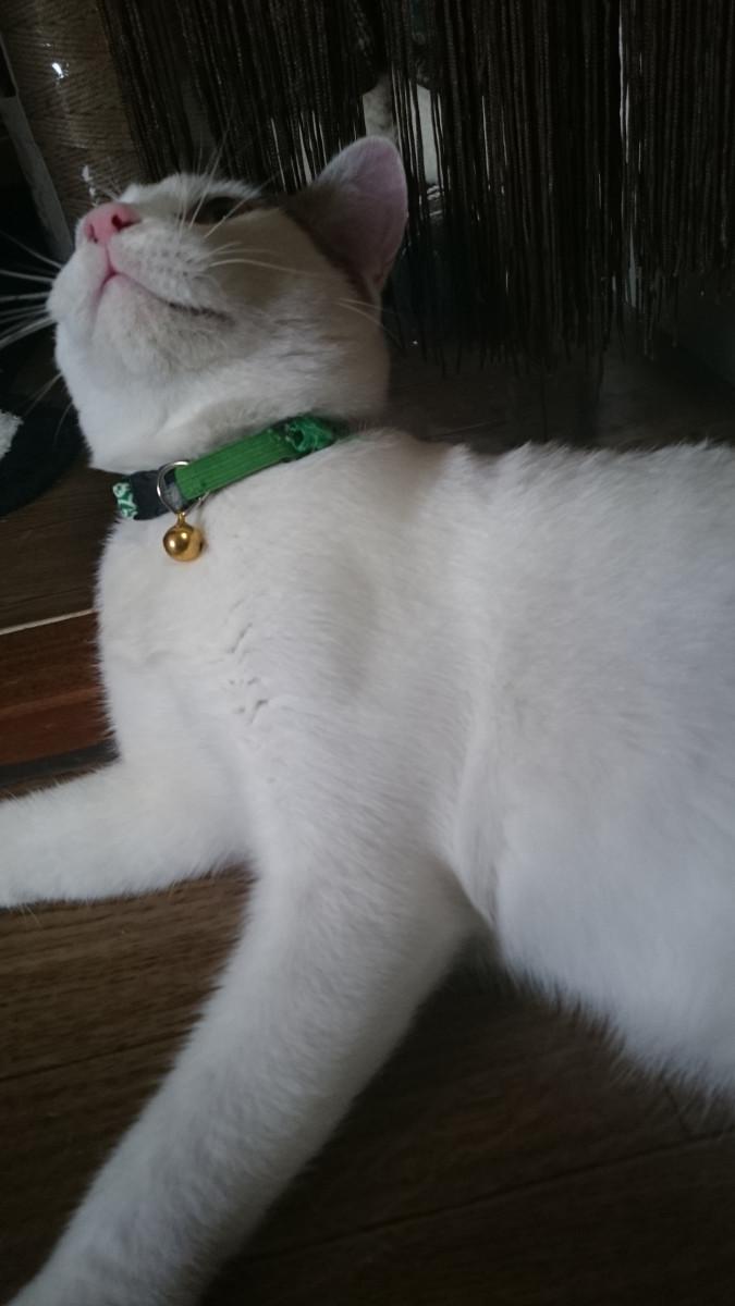 玩具といい百均産好きだね福。値段=愛ではないが少し複雑だぞ。(散々蹴ったり噛んだりでボロボロになった前の首輪を見ながら)