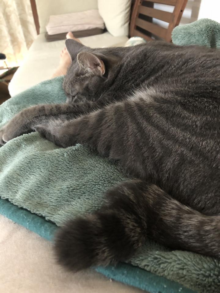 ミーちゃんに助けられた子はムーちゃんと言います。そんなムーちゃんが何年か前に仔猫を連れて帰ってきました。その子は未だに慣れていません笑笑