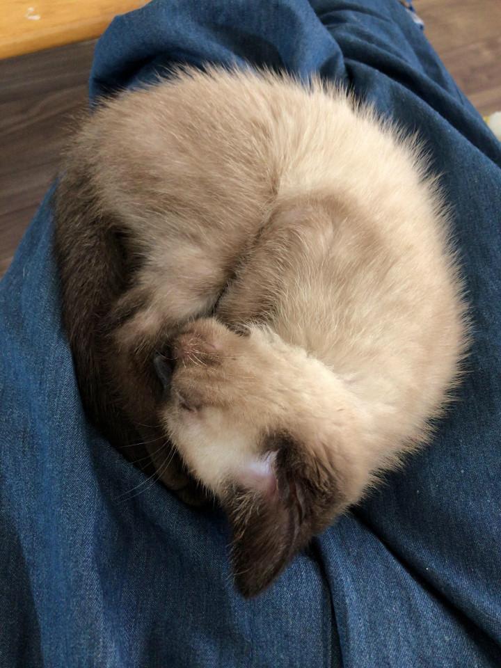 他に猫がいたので少し慣れるのに時間がかかったような感じがしますが、今は座ってると上に乗ってきて寝たり、立ってれば脚を登ってきたり…人間とも仲良し、とても甘えんぼです。