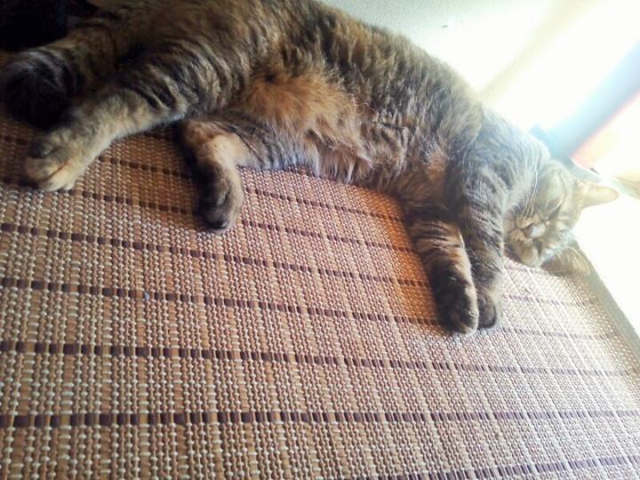 クーラーの効いた部屋で完全に寝ているマロコちゃんがぶちゃ子で可愛い。