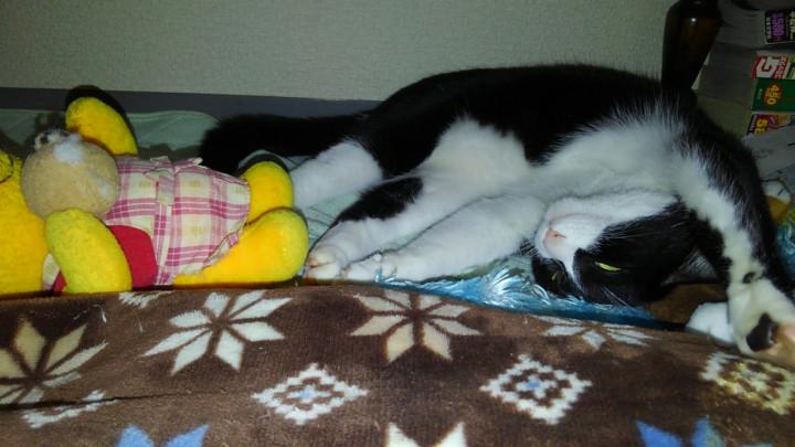 暑さのためか多少の腹式呼吸の荒らさみられ、画像の様にネムネムですが、元気そうです!
