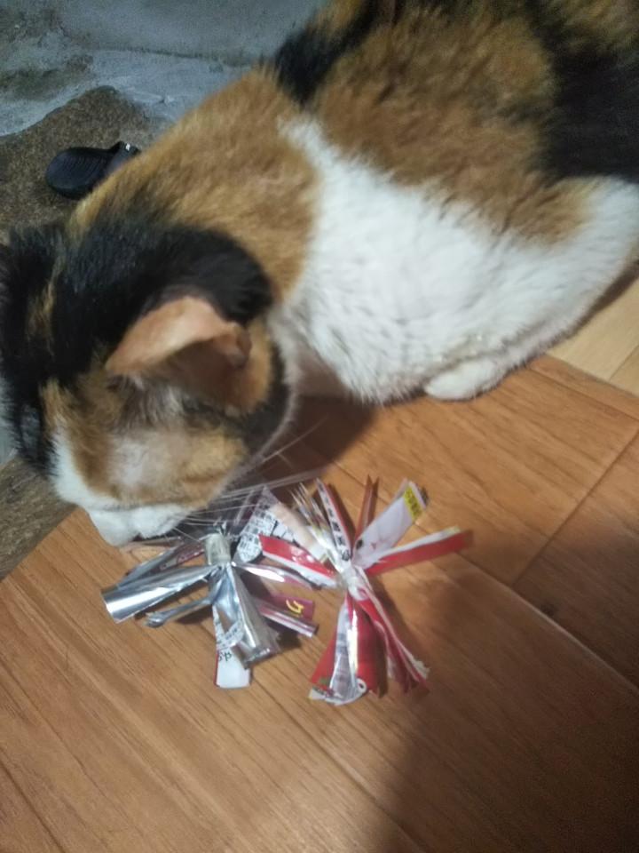 「最初にちゅーるの空袋で作った時は、ひいたわ(。>д<)」