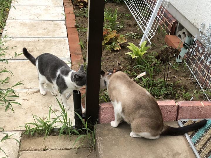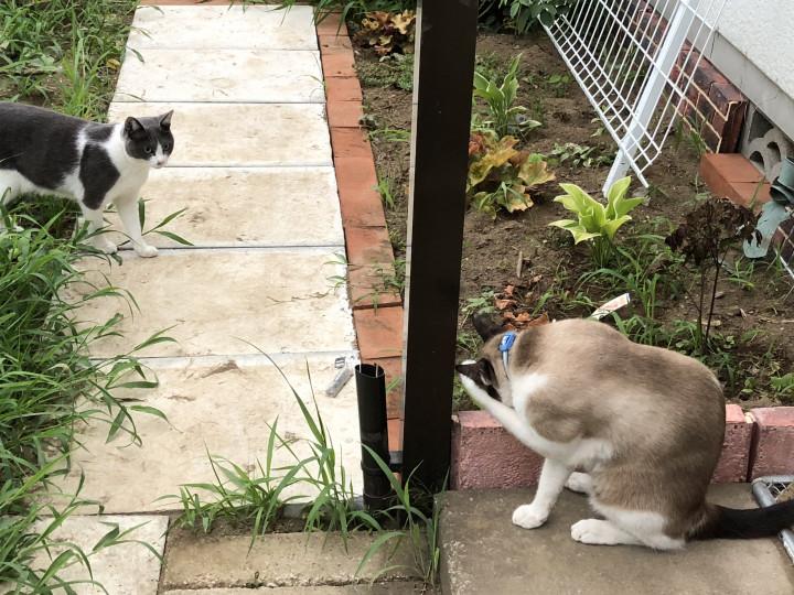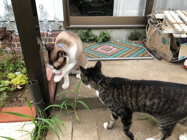 「今頃起きてきて!あたし、一人でよそ猫を追っ払って大変だったのよ?」