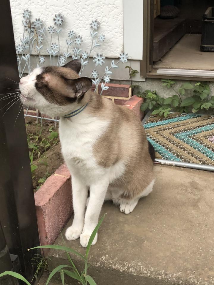 音に気がついた白、モソモソと起きて来て玄関外に出る。