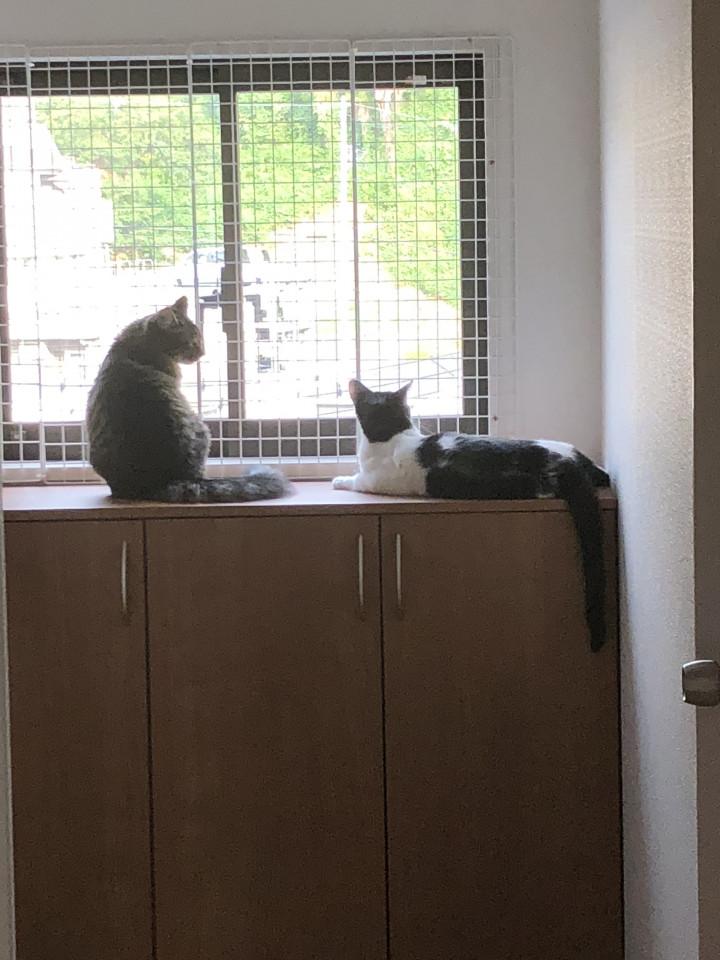 ふぅとちょびは2か月半違いです。キャットタワーが破壊するほど仲良く遊んでいました。モモが来た時、ふぅは1歳4ヶ月、あまり遊ばなくなっていました。ちょびはモモが来た時から興味津々(^o^)すぐ遊びはじめてた。