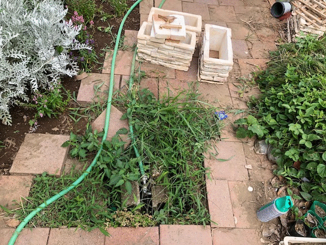 水栓柱はセット品だと諭吉さんが何人も必要なので、980円のガーデンプランターを4個重ねました。