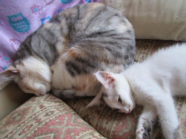 それでも段々と距離は縮まり、お尻の匂いを嗅いだり鼻チューしたり、一緒の部屋でお昼寝も出来るようになりました。