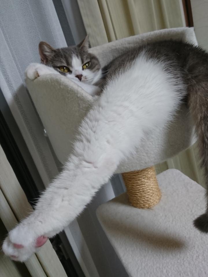 写真撮ったら起きちゃいましたが、こんな格好で熟睡してました。器用だなぁ😅