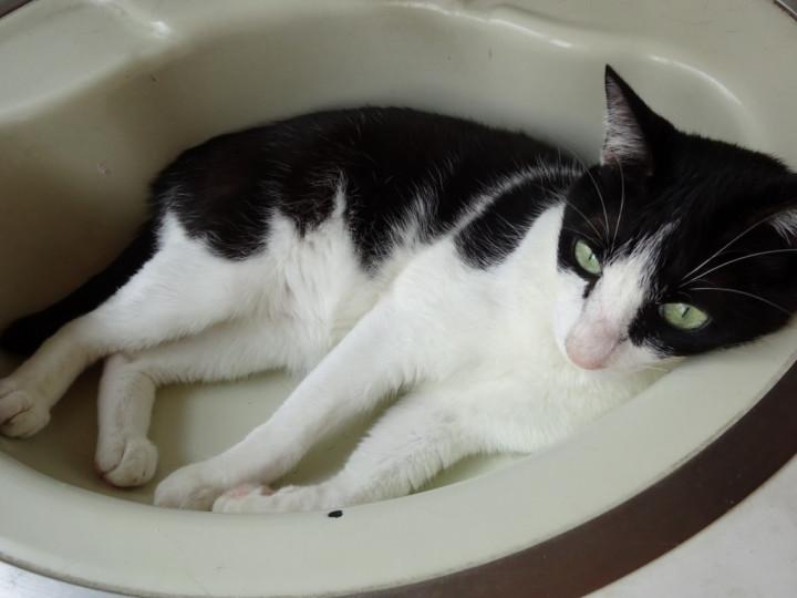 ↑母屋猫 ヒカル 洗面所で寛いでいます