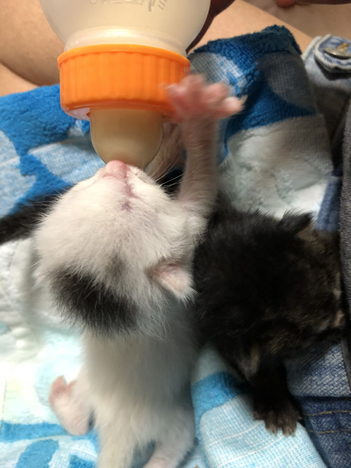 シロ子は食欲旺盛で子猫用のカリカリやパウチとかを食べ始めました〜(≧∀≦)✨