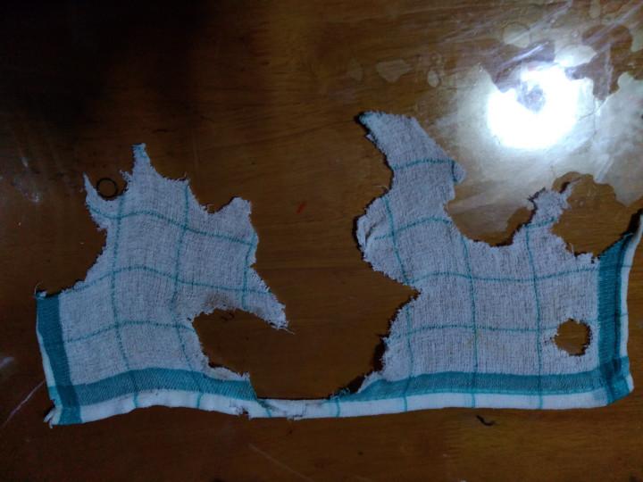 わりと細かく食いちぎっていることと 布自体がボロボロで薄くなっていたこと・