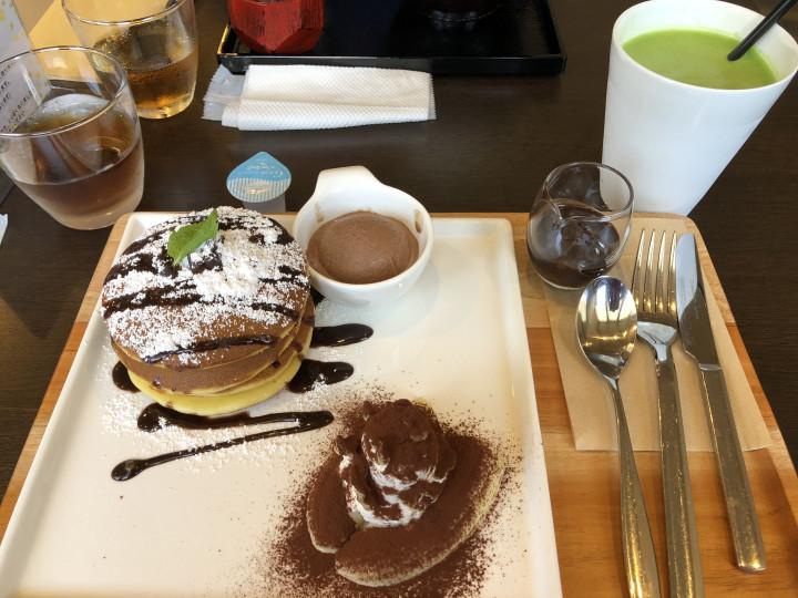 ゾッチャはチョコどらやきパンケーキと抹茶ラテのセット。
