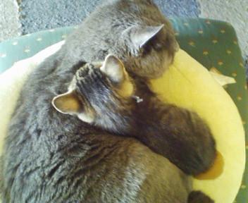 14歳のロシアンもどき巨猫フィ(♂)を筆頭に嫁の美猫カルネ、息子つばき、ぼたん。迷子のコギャル猫あやめも加わり大所帯・・・と思っていたら、あやめ(クロさん所の花のママ)がまた6プニー産んでまさに猫屋敷...