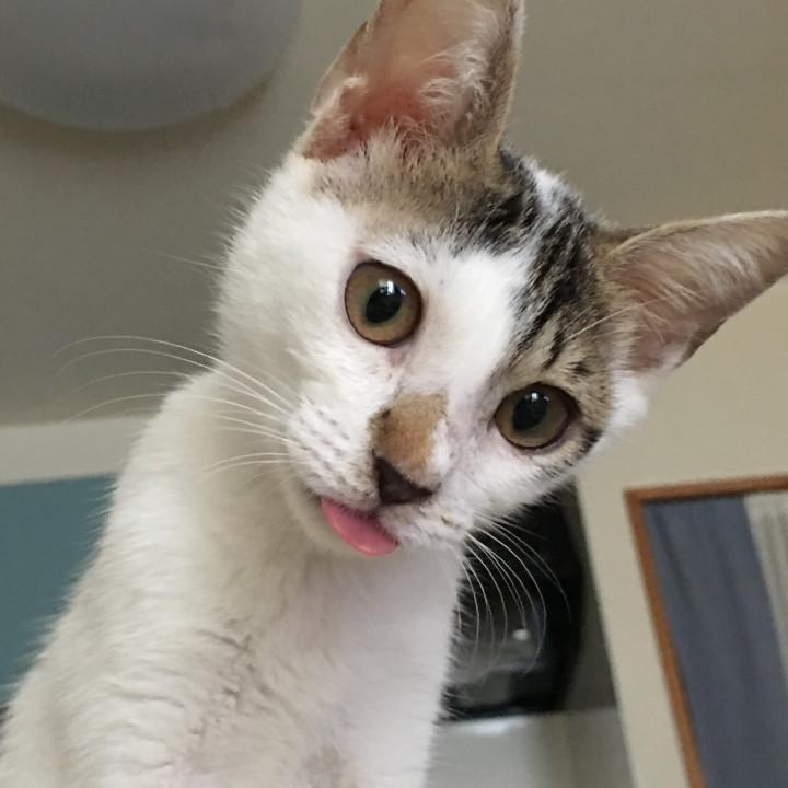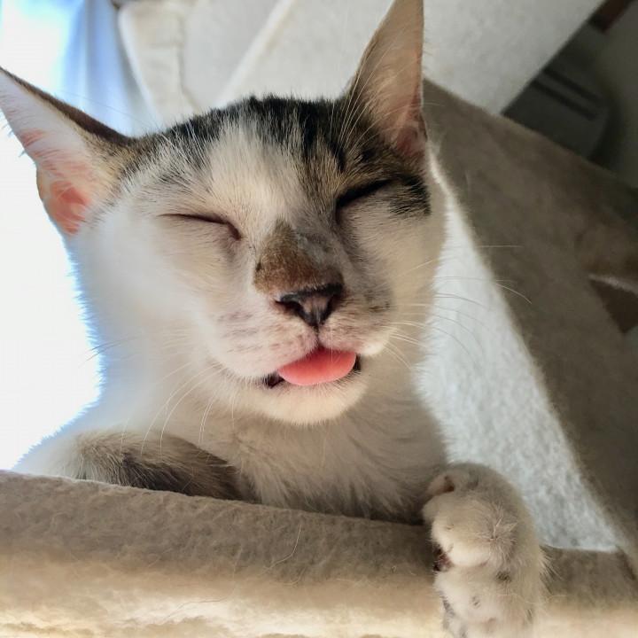 クシャミをした後、必ず、舌が、べーっ。