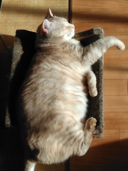 この爪とぎ、べるがオシッコしたので三分の一、切り取ったんですよ(^^;)