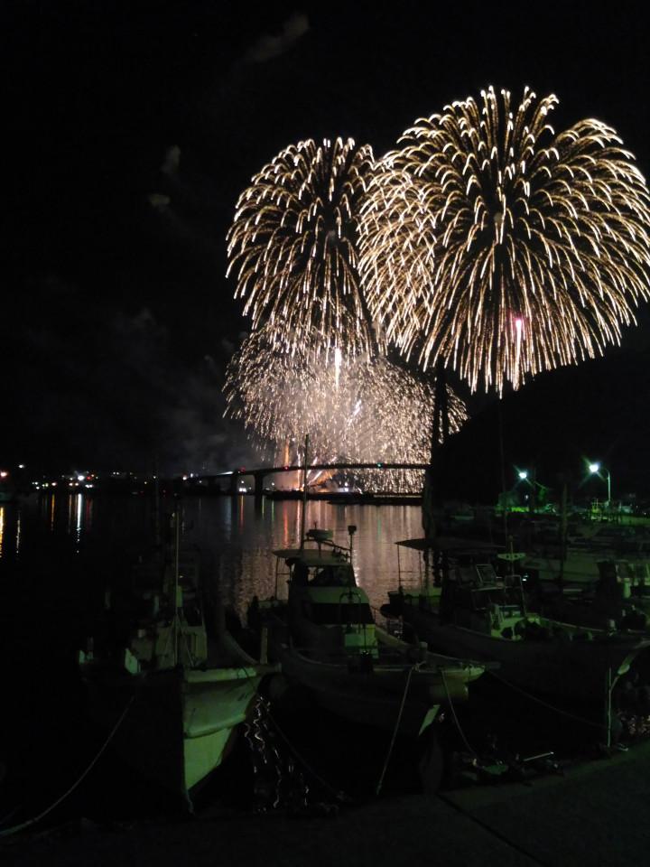 駐車場まで帰り 港から花火を見ました