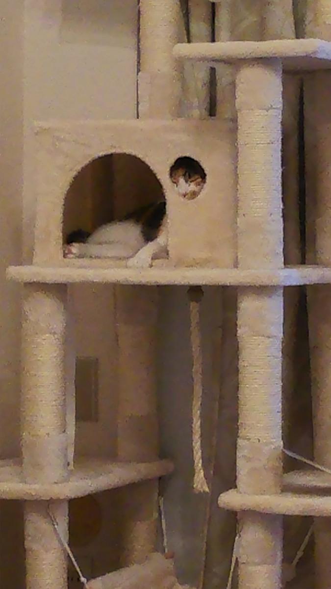 ↓コロンビアタワー(日本対コロンビア戦の日に夜鍋して建てたキャットタワー)