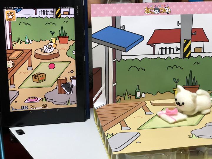せっかく可愛いからねこあつめゲーム画面と記念撮影♪