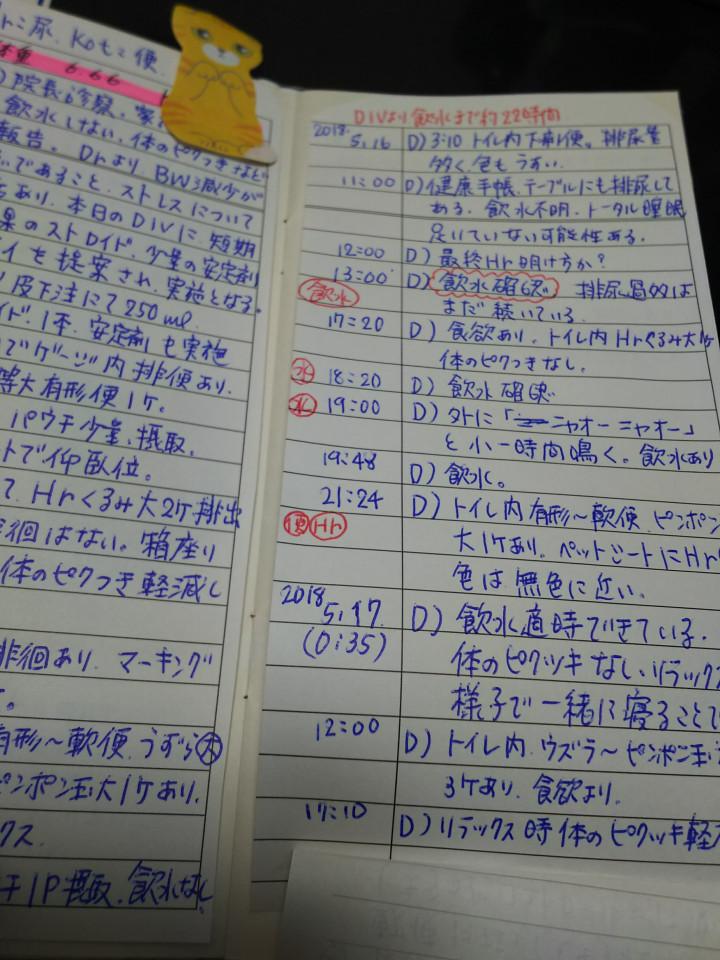 強迫的に思われるかもしれませんが、今となっては、過去同じ処置を受けた時の経過がどうだったか分かるので、獣医師ともディスカッションしやすくて助かってます(笑)