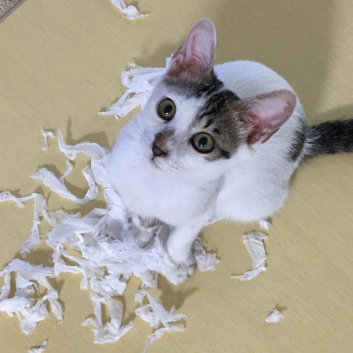 また、ティッシュ、出しちゃったね、朝、ティッシュまみれで、見つめてくる。ま、いっか(^^;;怒れないよね、その瞳じゃ。