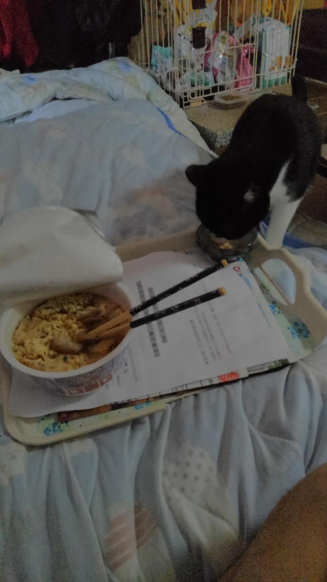 そんなんで、もう帰宅しており、みっこは朝・晩のご飯だけなので、ちゅーるだけですが、今日の昼食は相席しました!