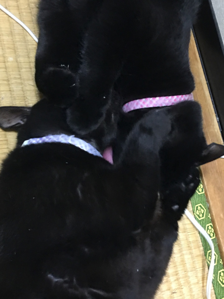 お前ら何やっとるの?( ;´Д`)で、我に帰ったかこちらを2匹で見てまたぺろぺろ始まりまたエスカレート…(^◇^;)